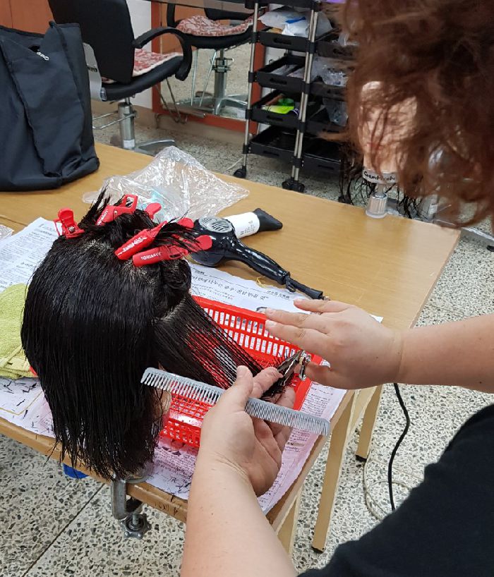 헤어미용양성과정 커트반 수업하는 모습입니다.