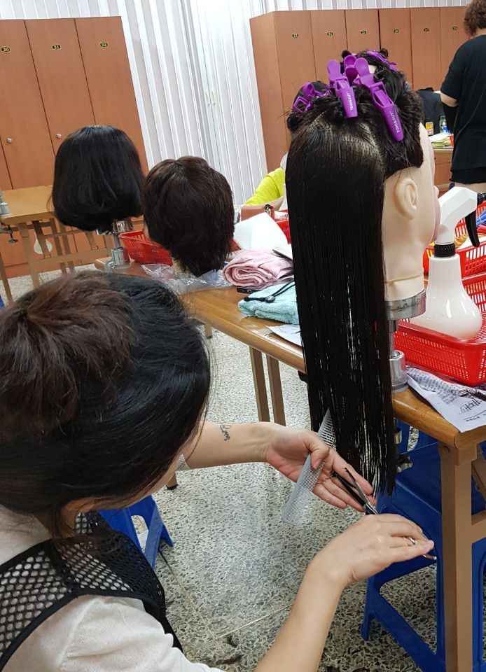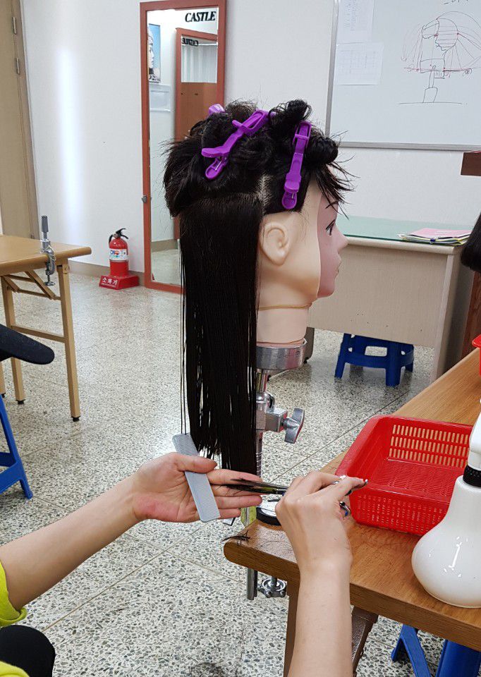 헤어미용양성과정 커트반 수업하는 모습입니다.
