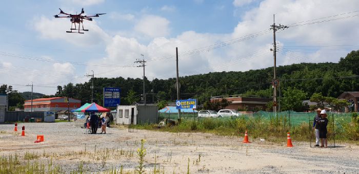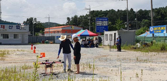재창업 패키지 수업을 통해서 만든 드론을 가지고 야외에 나갔습니다.