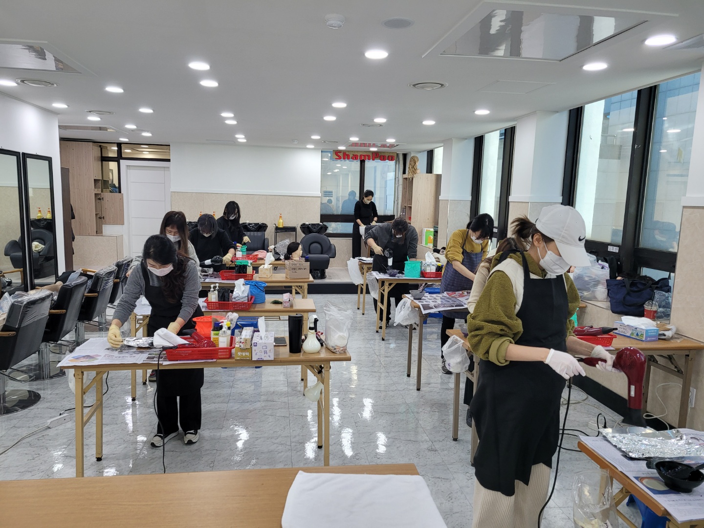 헤어 자격증 펌수업과 컬러 수업입니다.