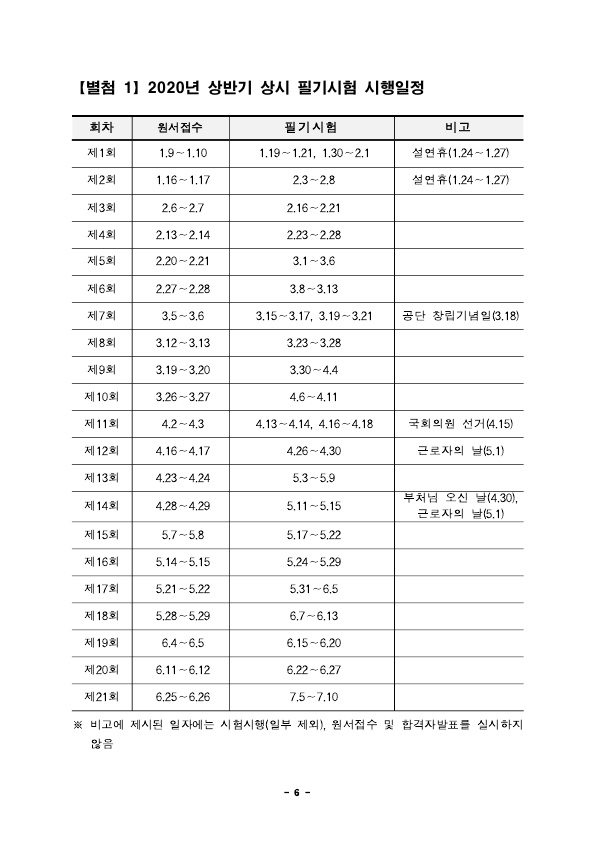 : 2020년 상반기 국가기술자격 상시검정 실기 시험일정