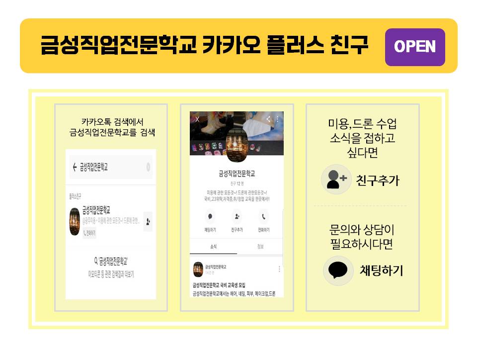 금성직업전문학교에서 카카오 플러스 친구를 오픈하였습니다.