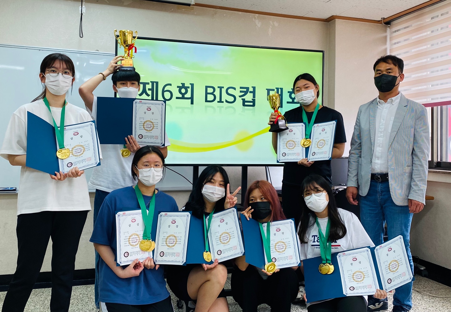 제6회 BIS컵 국제이미용기능경기대회에서 일반고위탁학생들이 피부미용, 헤어미용, 네일미용에 참여하여 전원수상과 헤어미용부문 대상, 네일미용부문 대상을 받았습니다.