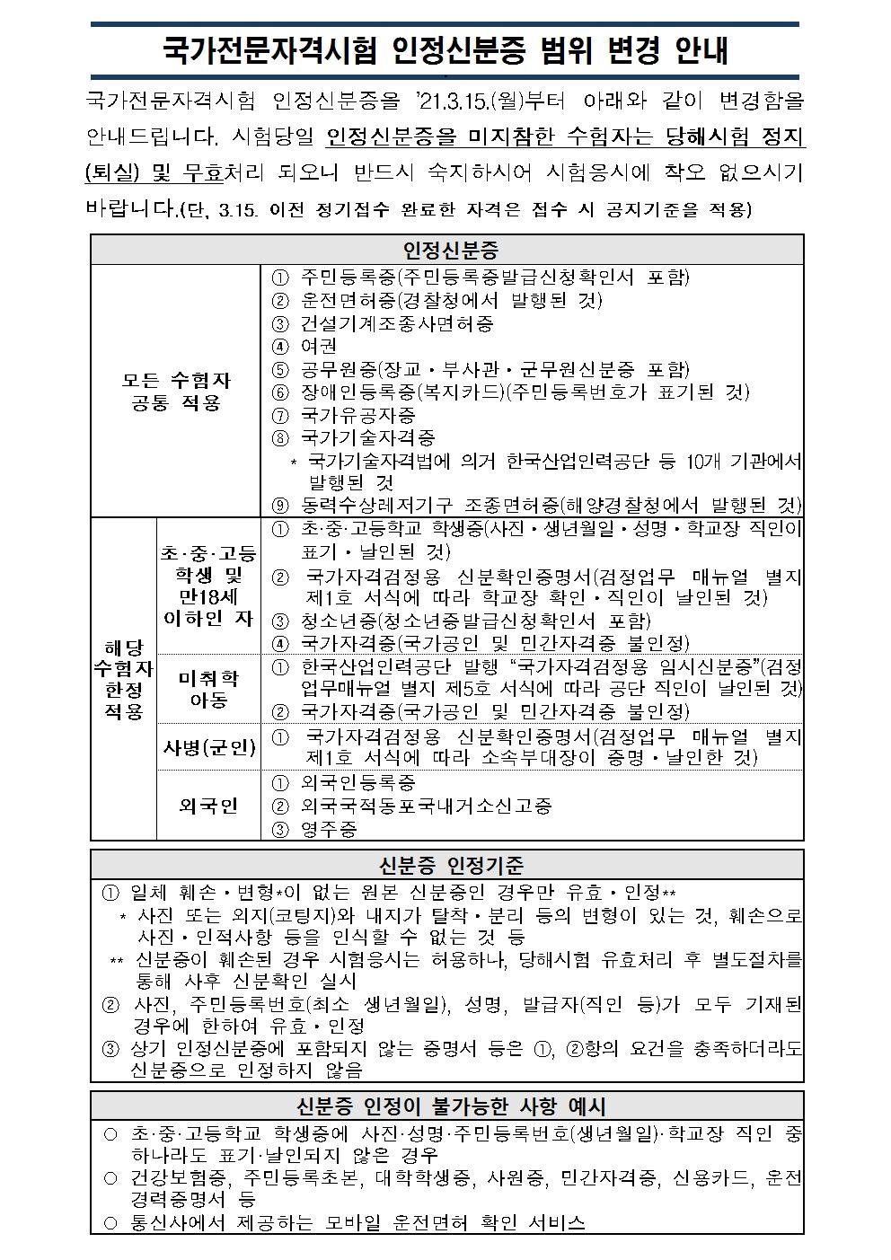 국가전문자격시험 인정신분증 범위 변경 안내